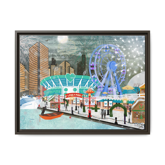 Framed Lovly Pier Canvas — Nightscape Wall Art